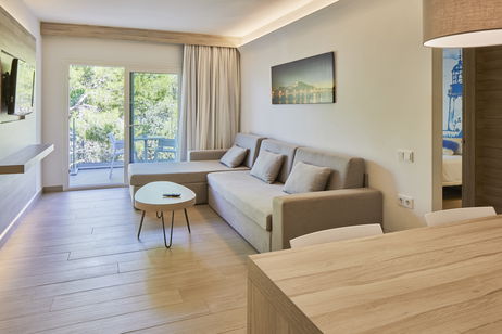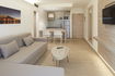 The side apartments offer a bedroom. A sofa bed for the third person in the living room, private bathroom with shampoo, flat-screen cable TVs, balcony and equipped kitchen with oven, stove, microwave and refrigerator. The 'Side apartment' are on the second and third floor of the building, with partial sea views.