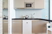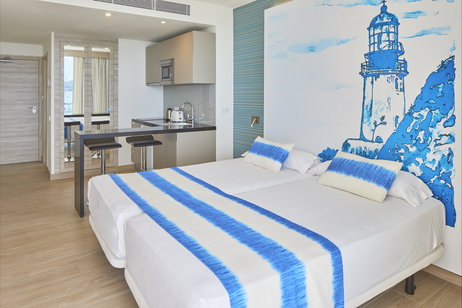 Los estudios ofrecen un sólo dormitorio de 30 metros cuadrados, baño privado con champú, TV de pantalla plana por cable, balcón con vistas frontales al mar, así como cocina equipada con horno, fogones, microondas y nevera. Los apartamentos 'estudios' se encuentran en la primera, segunda y tercera planta del edificio, teniendo vistas frontales al mar.